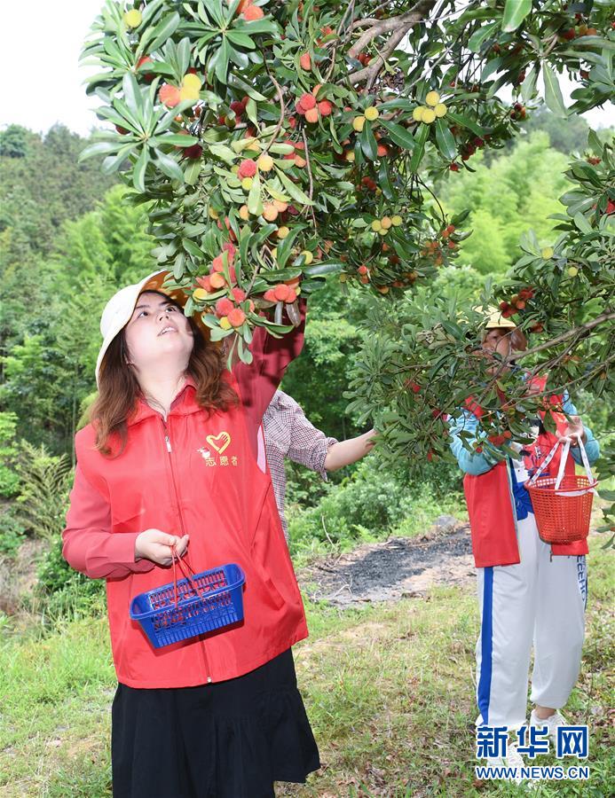 6月2日,党员志愿者在湘溪村杨梅园帮农户采摘杨梅。新华社记者翁忻旸摄
