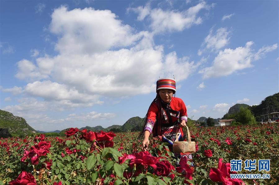 6月2日,云南丘北县八道哨乡阿诺村的少数民族妇女在种植基地采摘食用玫瑰花。云南省文山壮族苗族自治州丘北诺香花卉农业科技开发有限公司自2016年以来发展食用玫瑰花种植1200亩,集生产加工、销售玫瑰花系列产品及旅游观光于一体,带动当地300多户群众脱贫增收。新华社记者杨宗友摄