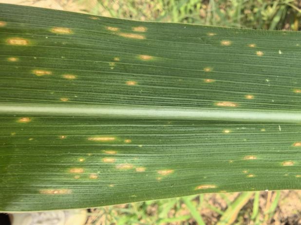 当前,病害重于虫害。病害主要为害叶部,总体偏轻发生,其中弯孢霉叶斑病30万亩,普遍发病,病株率最高为100%,但病情指数较低;小斑病显症面积约20万亩,感病品种田病株率较高,最高接近100%;玉米南方锈病和穗腐病未见发生(夏玉米),室内检测发现锈病带菌率为50%,侵入率为26.6%。近期,延庆高空探照灯下成虫数量较少,大部分轻简化诱捕器内虫量也较少,种类多以棉铃虫成虫为主,田间零星见幼虫为害。