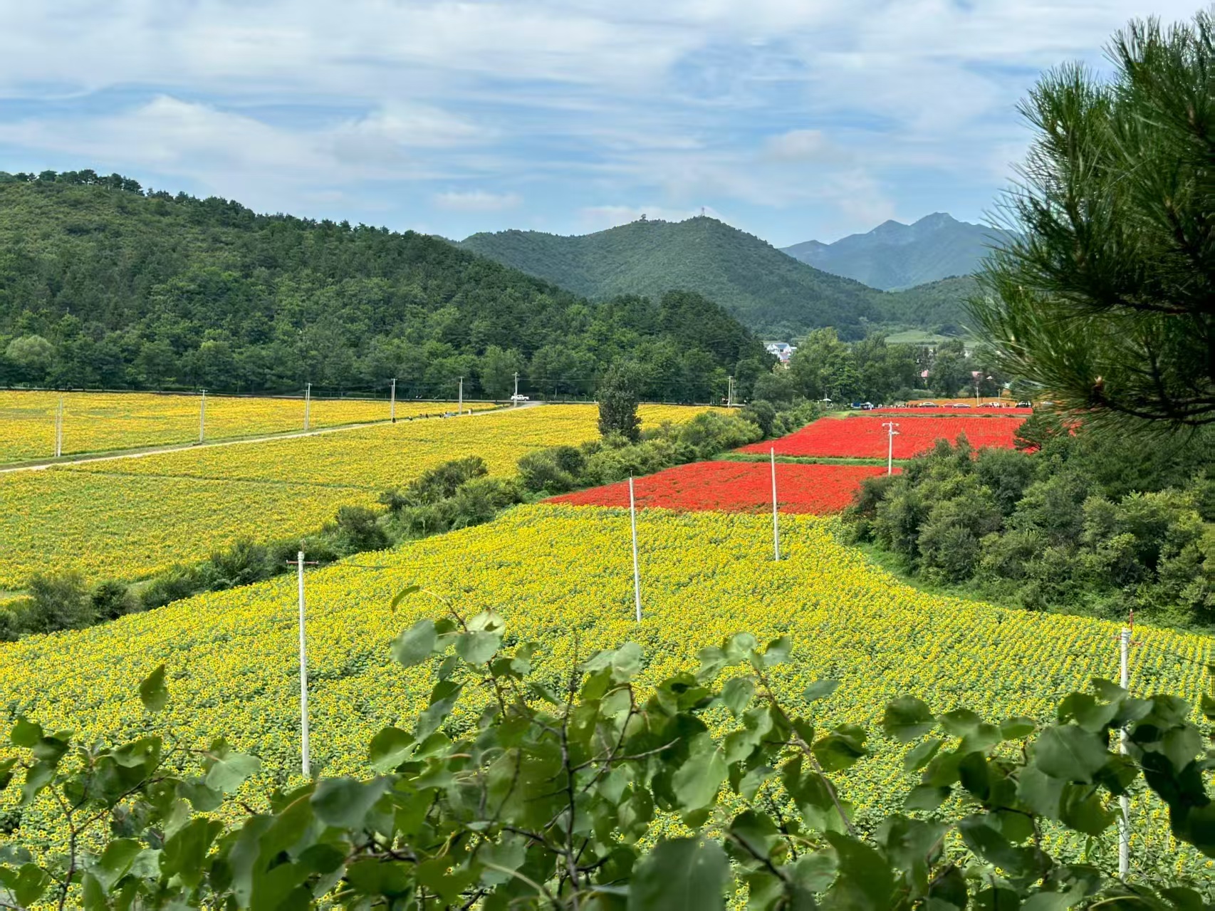 四海镇千亩花海景观全面提质升级。品种有百日草、马鞭草、串红、茶菊、油葵、硫华菊等,各类鲜花依次连片开放,可登高远观,可身入花丛,可俯近嗅赏。赏花季从8月持续到10月,期间开展花海写生、花海摄影、花海徒步、花海骑行等系列活动,游客可全方位、多角度欣赏壮丽花海美景。