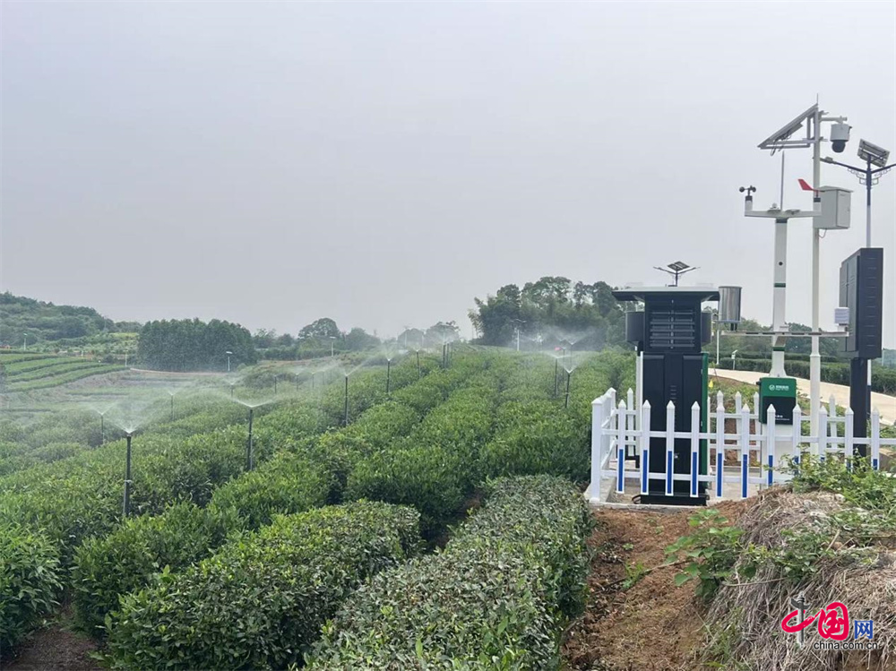 在前进村鑫丰茶场的茶园里,除了气象监测、虫情监测系统,还建设了水肥一体化智能灌溉系统,将灌溉和施肥相结合,根据土壤墒情、气象数据和茶叶生长需要,精准、精量、按需供水、施肥,在提高农作物产量和品质的同时节约水资源、减少肥料浪费、减少人工操作工作量。经过智慧农田建设,茶园从以前的只能采一季春茶变为春夏秋三季均可采茶,用科技手段将采茶周期从2个月延长到7个月,月产茶叶达6万斤。