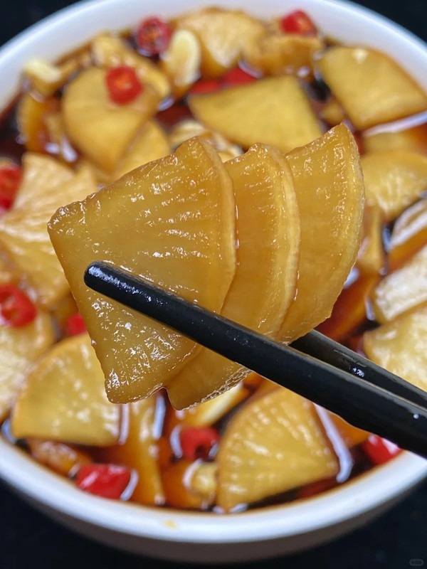 醋泡萝卜:萝卜切片泡入醋中,酸爽开胃,解腻下饭。