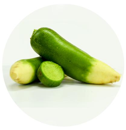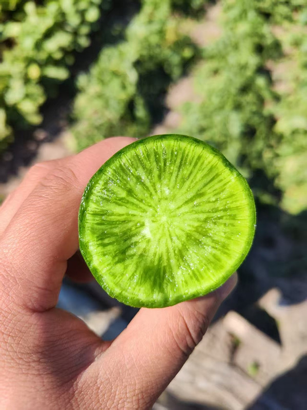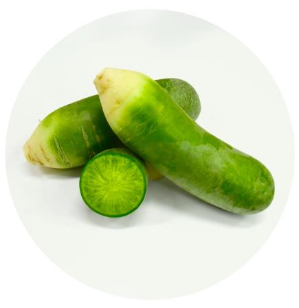 绿星1号:口感脆甜不辣,瓤色翠绿,耐储,生长期65~70天,长度20~25厘米,收尾好。