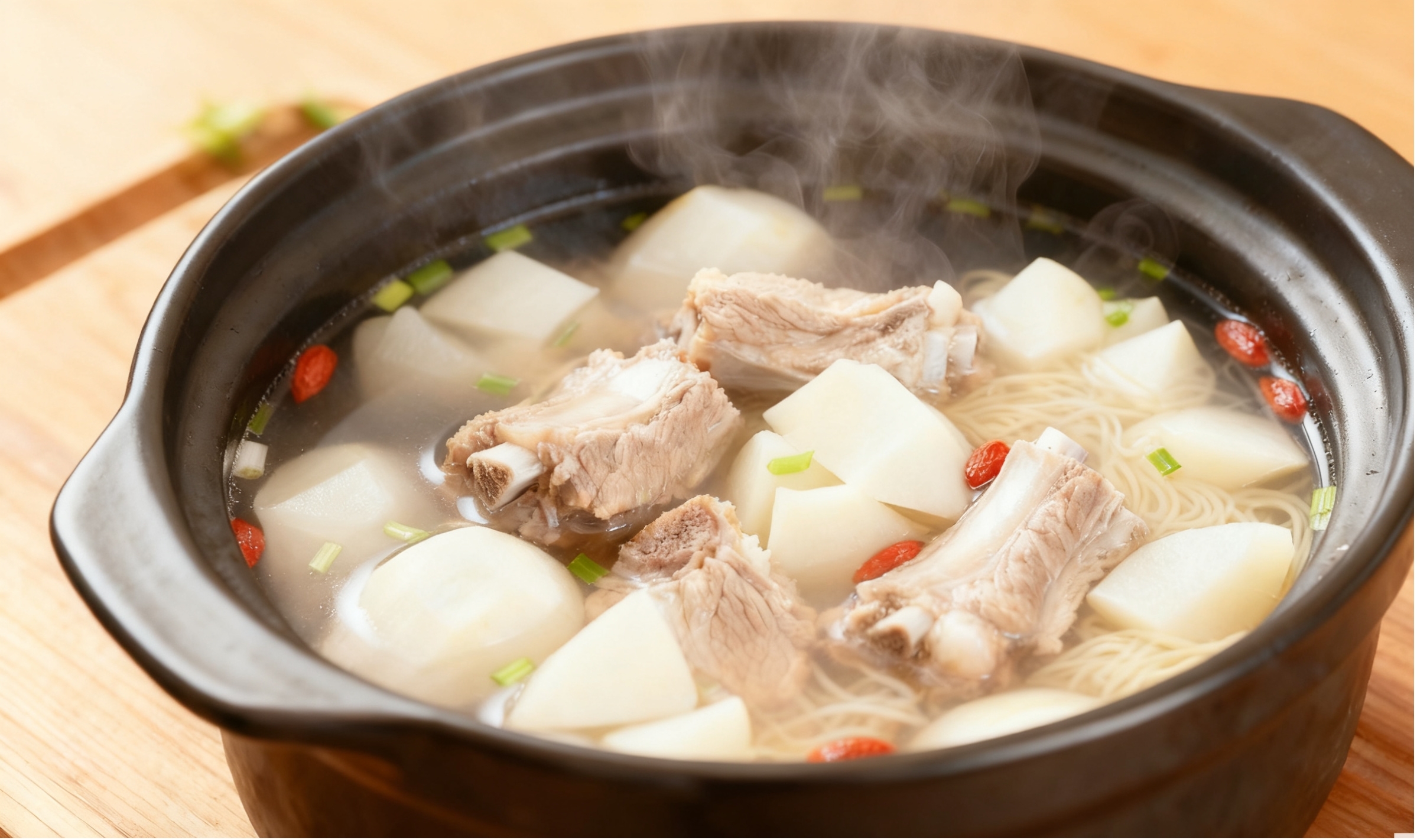 煲汤系列:排骨萝卜汤,慢炖后萝卜吸满肉汤精华,软而不烂。