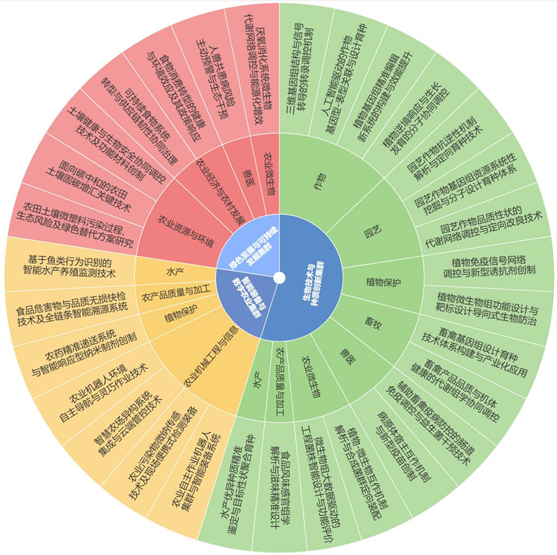 报告指出,全球农业科技正呈现三大变革趋势。一是智能化从局部自动化迈向全链条自主化,典型如“人工智能驱动的作物基因型-表型关联与设计育种”前沿系统性破解育种黑箱,热点“畜禽关键行为智能监测与养殖调控技术”实现生产管理的全程数字化闭环;二是绿色化从理念倡导落实为创新驱动,呈现出源头“减量”与终端“增效”并行的二元路径,如热点“面向抗病虫绿色育种的作物基因编辑技术体系与应用”旨在减少农药依赖,热点“畜牧系统温室气体减排与废弃物资源化利用技术”直接服务于“双碳”目标;三是多学科深度融合重构创新范式,形成“生命科学(BT)+数据科学(IT)+材料科学(MT)”的交叉汇聚,如“食品风味感官组学解析与滋味精准设计”通过融合食品化学与数据科学,实现风味数字化,“微生物组大数据驱动的工程菌株智能设计与功能评价”通过结合生物学与人工智能,开创菌株理性设计新路径。