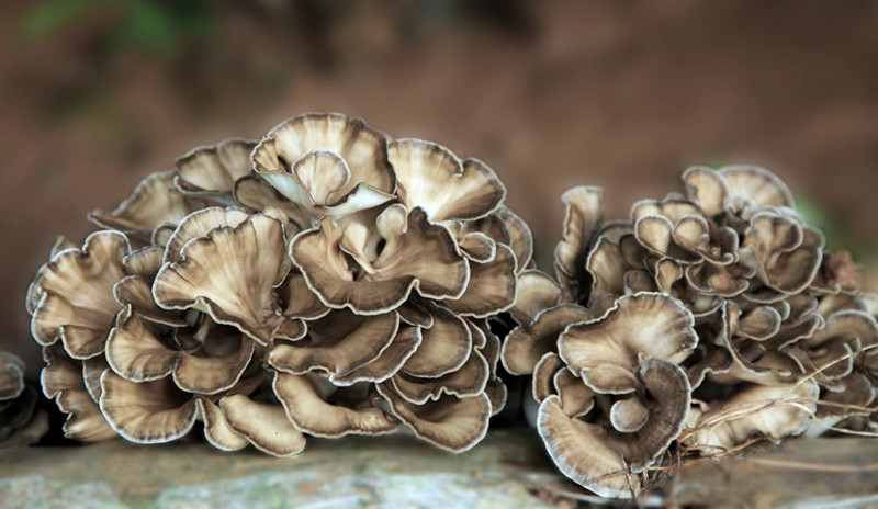 栗蘑,学名灰树花,呈珊瑚状分枝,菌盖相互重叠如莲花花瓣,肉质柔嫩,具松蕈芳香,口感脆嫩似鸡丝。其干品蛋白质含量达25.2%,含有9种人体必需氨基酸,其中精氨酸、赖氨酸含量超过金针菇。相较于普通食用菌,维生素B1、E约高10-20倍,维生素C含量约高3-5倍。所含β-葡聚糖具有免疫调节活性,有“真菌之王”和“华北人参”的美誉。