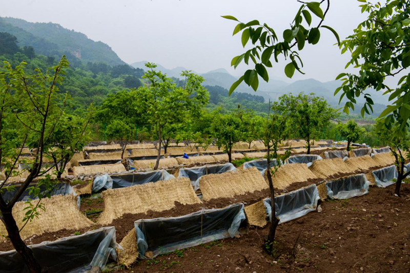 依托昌平区延寿镇独特的麦饭石土壤、天然泉水和Ⅰ级空气质量,海疆合作社构建了“林地+特色种植”的立体农业模式。通过林下仿生态种植技术,以板栗枝条、玉米芯等天然原料制作菌袋生产栗蘑,采收后的菌袋用于培育核桃、中草药、特色蔬菜等40余种作物,形成“多元种植、资源复用”的生态循环模式。