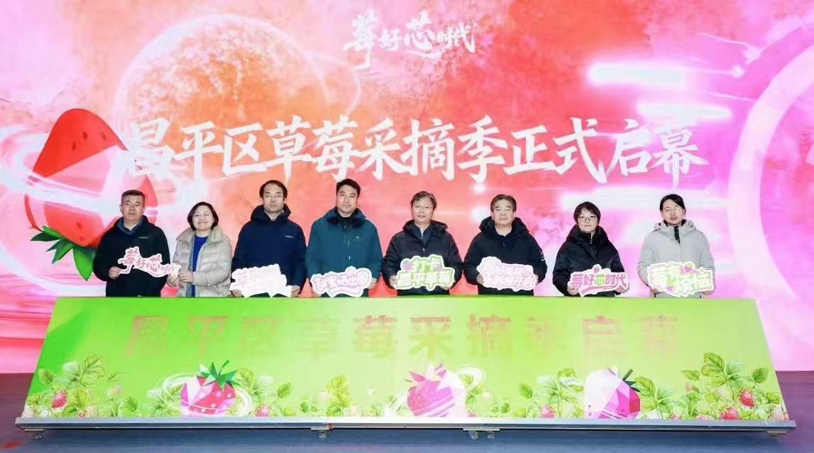 发布时间:2025-12-08 15:18:44 | 来源:中国网 | 作者: | 责任编辑:王静为深入推进乡村振兴战略,强化昌平草莓区域公用品牌影响力,推动农文旅深度融合,2025年12月5日,莓好“芯”时代——昌平区草莓采摘季启幕暨御享市集开市活动在北京金惠农农业专业合作社隆重举行。本次活动由北京市农业农村局指导,北京市昌平区农业农村局、昌平区农业服务中心、北京市昌平区兴寿镇人民政府联合主办,以草莓为媒,打造了一场集产业推介、文化体验、消费互动于一体的农文旅盛宴。